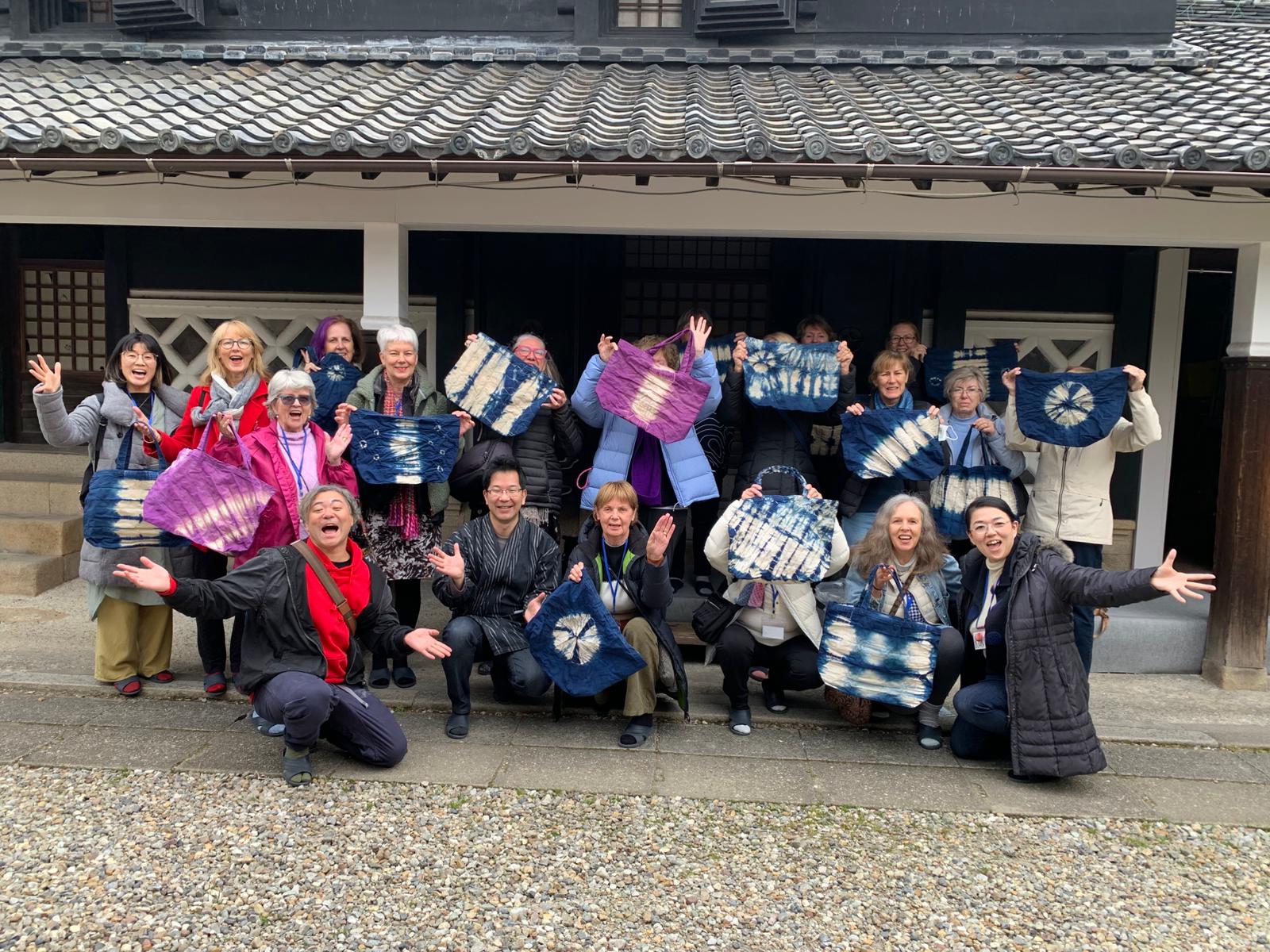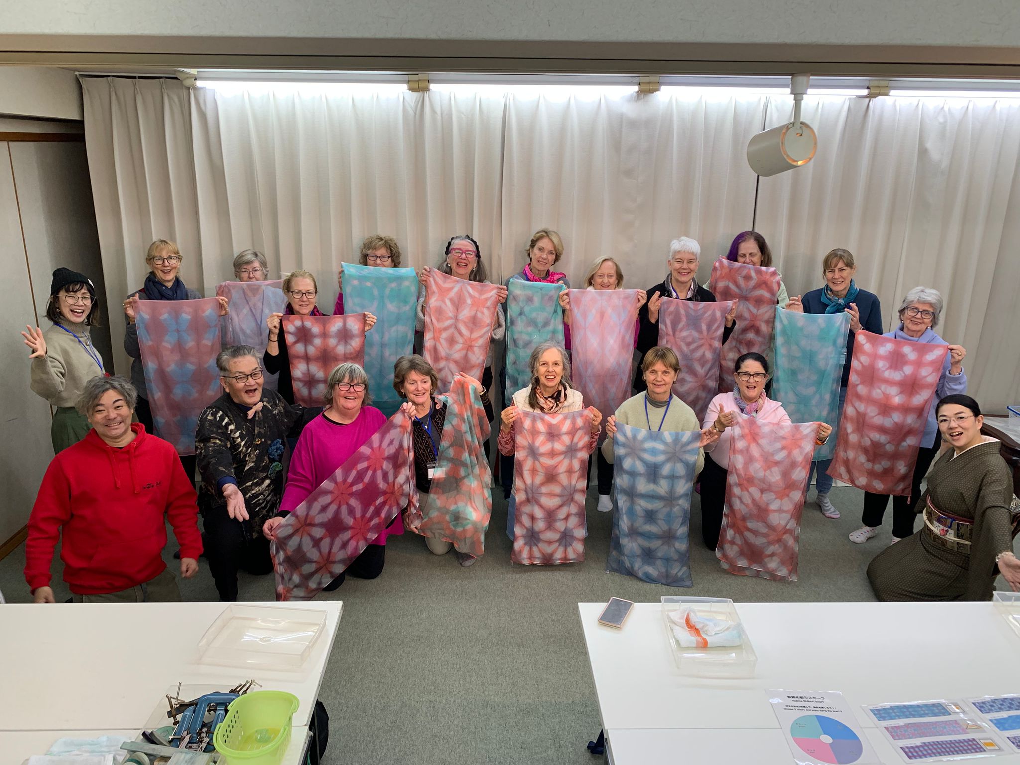 During our week there we engaged in the techniques of Confetti Quilting, Shibori dyeing, indigo dyeing, silk flower making, sashiko workshop, traditional tea ceremonies, antique markets, Brother Sewing Machine Factory, Kimono Weaving factories and plenty of fabric shopping opportunities of many different types and so much more.