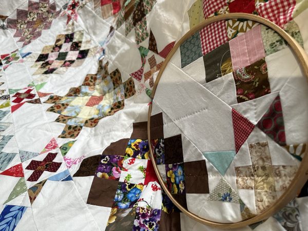 Hand Quilting Scrappy Thousand Pyramids