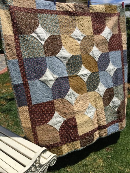 Unfortunately, not every quilt story is a happy one. I think that may well be the motivation for the making of many quilts. They are made for reasons of illness, sadness and sometimes, unbearable grief. They may also be made out of frustration – The Drunkards Path Quilts come to mind. They can be a therapy as much as an art form or for joy. One thing I do know is that there is the wish from the maker, that it will bring some comfort and joy to the recipient. Another thing to remember is, that once a quilt has left your hands, who knows what will become of it. I like to make quilts that can be used. Not just for looking at…