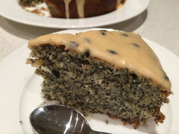 To make the Passionfruit icing, mix 1 cup of icing sugar with the pulp of 2 small Passionfruit. Spread gently over the cooled cake. Enjoy!