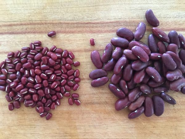 Adzuki Beans are a small red bean. The appearance is a bit reminiscent of a small kidney bean.